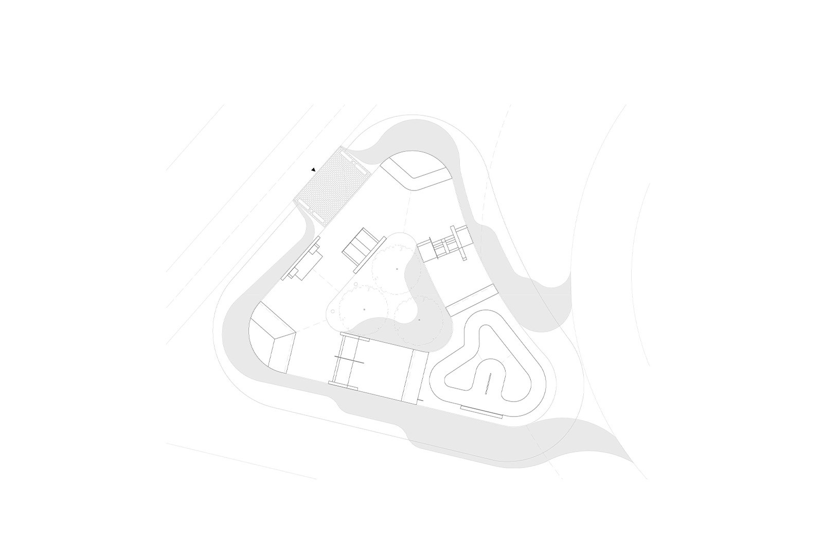 Desde la tipología, se rompe con el esquema tradicional de pista rectangular, cerrada y segregante, para proponer un trazado fluido, integrado al entorno, con visuales abiertas hacia la Laguna Don Tomás.