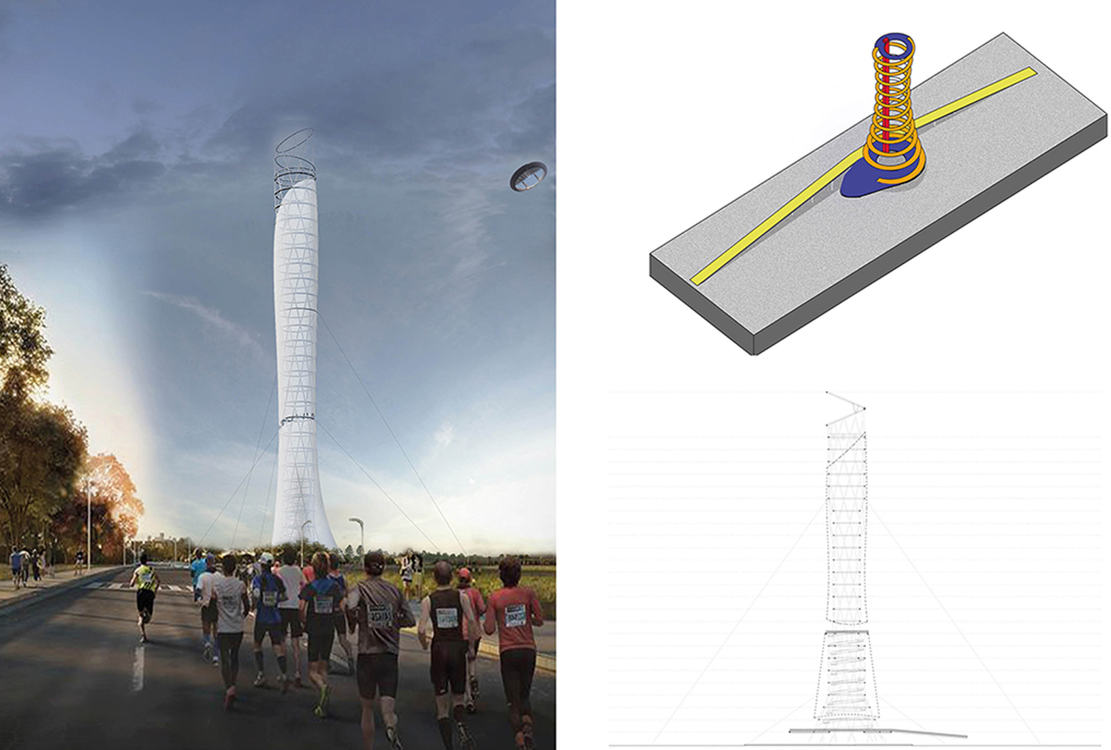 El proyecto propone un elemento que, por su altura y su emplazamiento, se presenta como un hito urbano y un referente del sitio. Su estructura principal adopta una forma circular que nuclea las circulaciones en su interior, invitando a recorrerla y a vivir la experiencia desde múltiples puntos de vista.