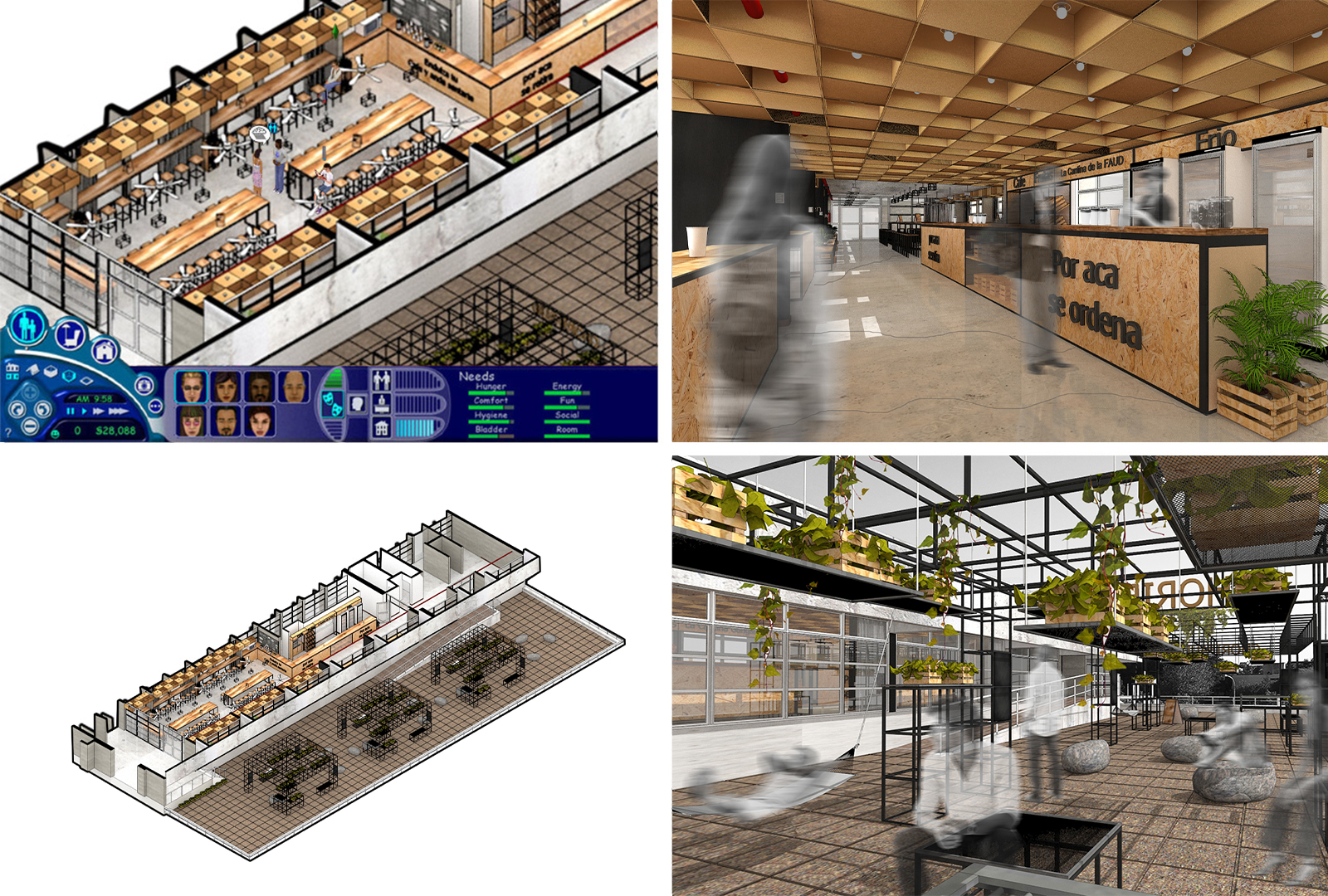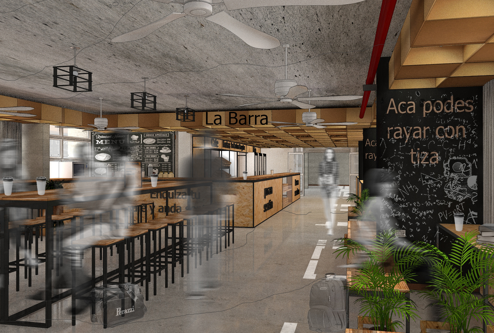 Es una área de transición rápida / semirápida. Ésto genera que los usuarios permanezcan un periodo más corto en éstas barras. Bajo la misma lógica, se plantearon mesones para compartir, que sean de transición rápida y no de permanencia.
