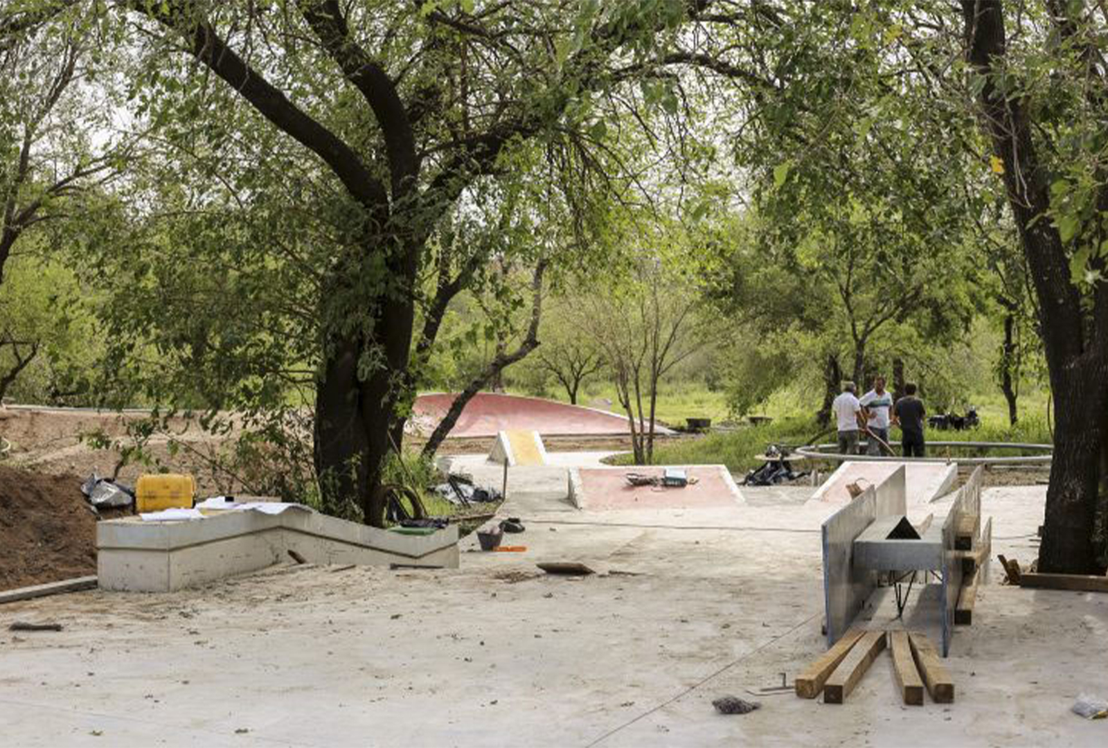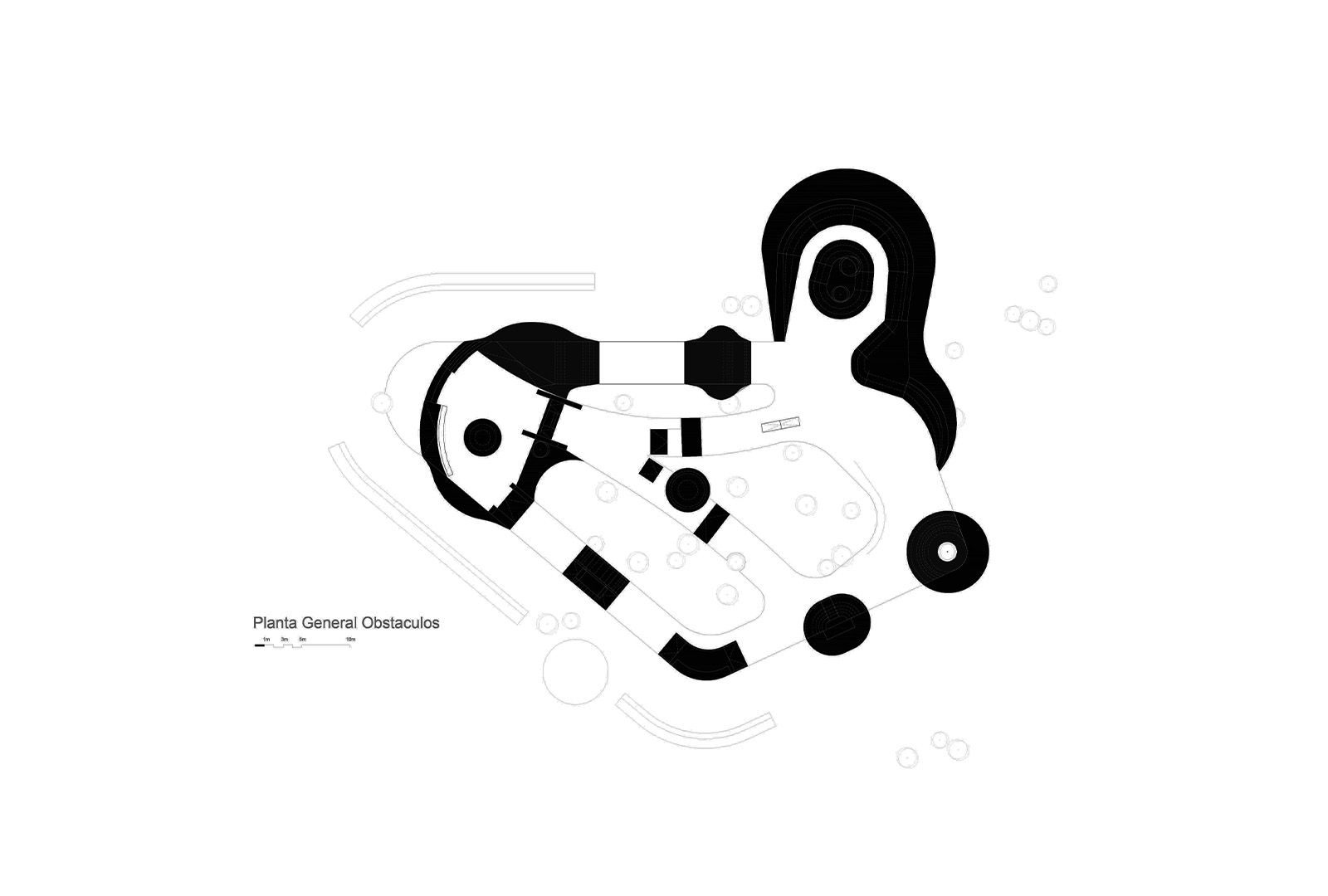 Se construyeron 14 obstáculos, distribuidos entre los bordes, las esquinas y el centro del trazado. Cada uno de estos elementos presenta múltiples posibilidades de uso, dependiendo —en primera y última instancia— de la imaginación de los usuarios.